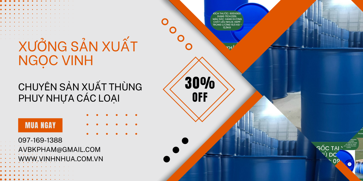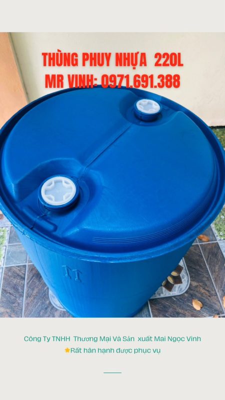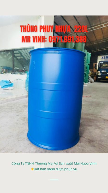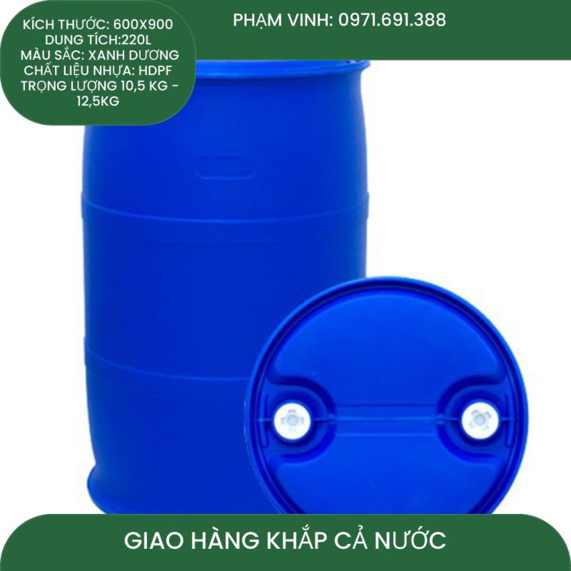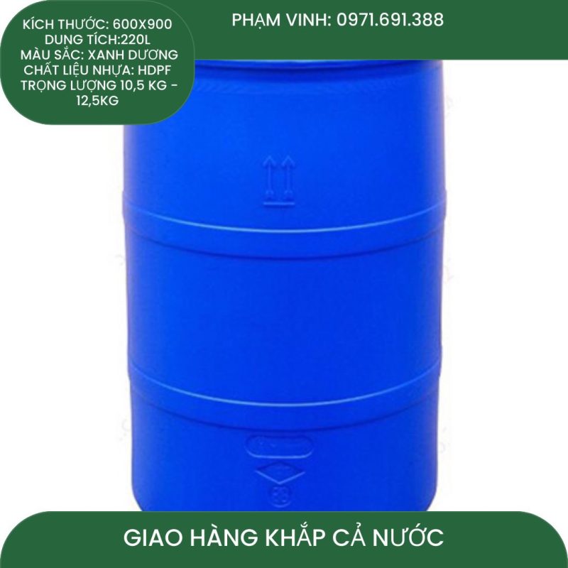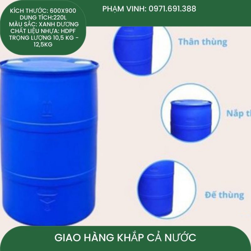 - Nguyên Liệu: 100% hạt nhựa nguyên sinh HDPE. Thân thùng phuy dày có độ bền cao, sức chịu va đập tốt.